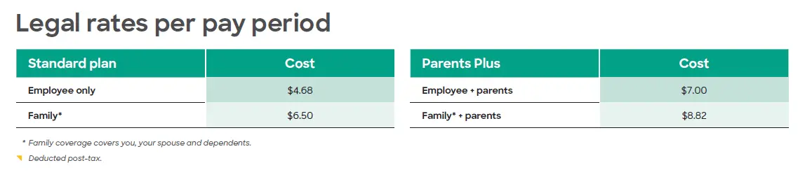 Single and family plans are available. Pay period rates are deducted from your paycheck each pay period, after taxes.