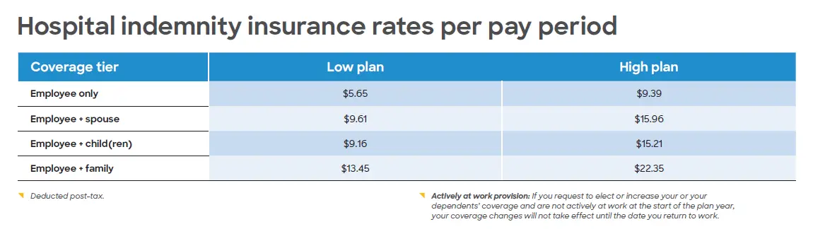 The hospital indemnity plan pays you cash benefits for an in-patient hospital stay for an accident, surgery, illness—or event to deliver a baby. Your hospital admission or daily stay(s) must occur on or after the plan's effective date. Use the money to help pay medical bills or everyday expenses like rent or groceries. The choice is yours!