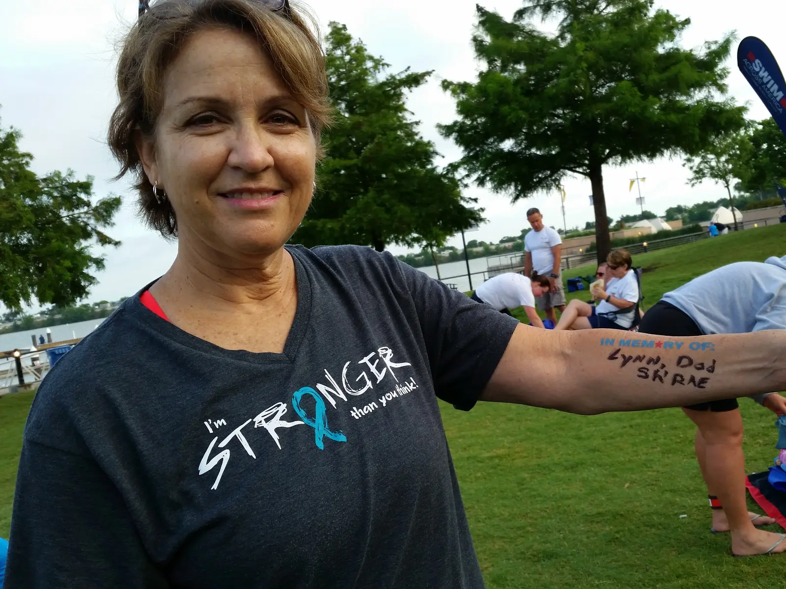 Danielle also swims every year in the Dallas Open Water Swim for Swim Across America, an organization whose mission is to unite people through benefit swims that raise funds for cancer research and clinical trials like the one Danielle participated in. Though she’ll never know whether she received the actual drug or the placebo, Danielle believes trials like hers are crucial for finding a cure.